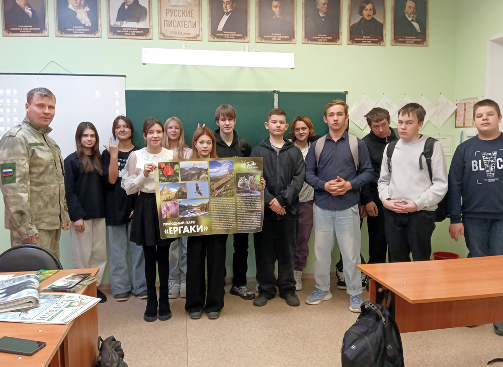 В рамках празднования Всемирного Дня волонтёра для учащихся 6-8 классов Семенниковской средней школы было проведено эколого-просветительское мероприятие «Волонтёрство в природном парке «Ергаки». Основной задачей урока стало знакомство и продвижение волонтёрского движения на примере природного парка «Ергаки».